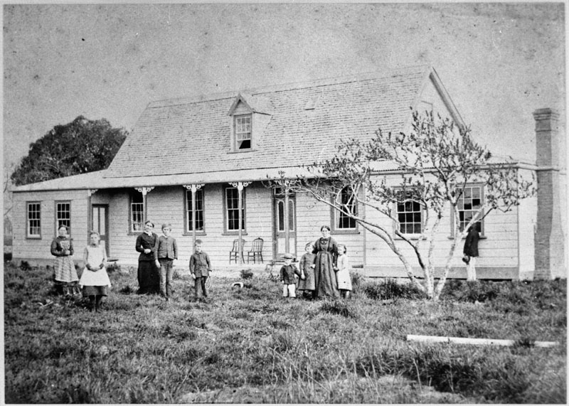 Yes – we live here now! This homestead burnt down and the second homestead was built circa 1879 on top of the original totara piles. You can see the scorch marks on them if you crawl under the house. The magnolia tree in this picture is now a towering giant and still very healthy. ❤