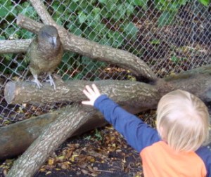 Today, the reserve offers valuable insights into our indigenous natural heritage, but also fun pursuits such as duck-chasing (not recommended, but inevitable!), duck-stroking (the duck purrs! – see right), and chatting with inquisitive kea (below).