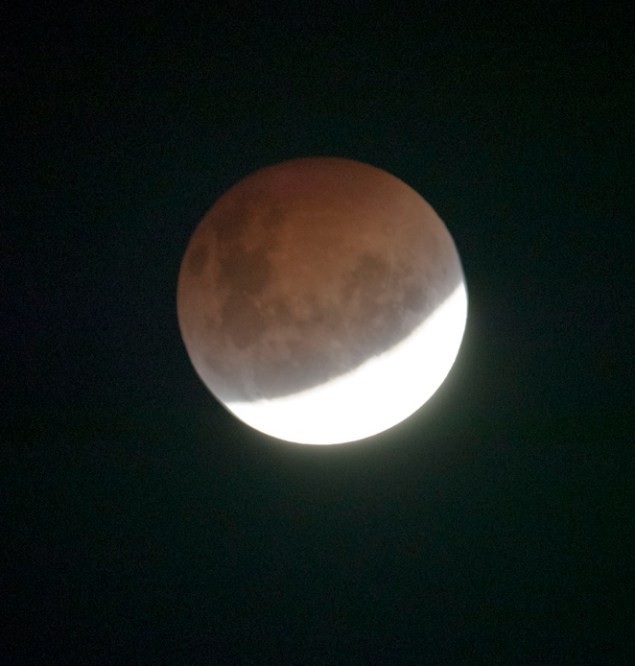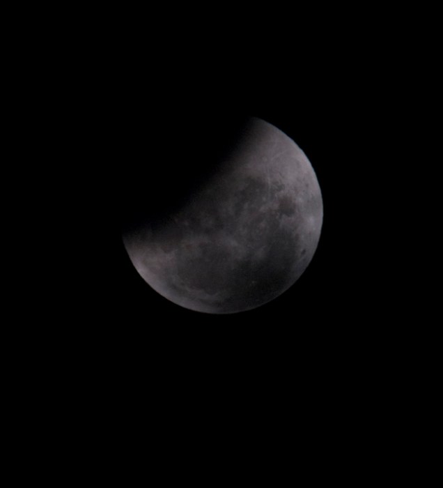 The eclipse began as the sun set at 8:36pm and ended about 11pm. Photos were taken, at 10.08pm, 10.10pm and 10.41pm respectively. For the photography buffs out there, they were taken with Nikon D200 camera with a 300mm F/2.8 lens and 2x tele-extender attached (the equivalent of a 900mm telephoto lens on a 35mm camera). First photo was taken with a shutter speed of 1/125 second, the second at 1 second and the third at 1/500 second. All photos copyright Paul Knight.
