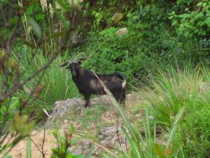 Akatarawa means ‘trailing vines’, probably referring to the dense supplejack vines that often make these forests almost impenetrable. The large area of native forest to the west of the road was once the last refuge of the now-extinct huia: the last reported sighting in the region (and one of the last in New Zealand) was in 1905 at the western end of Akatarawa Valley, near Reikorangi. Today, wild goats, rather than huia, make their home on precipitous ridges at the top of the valley [see photo right].