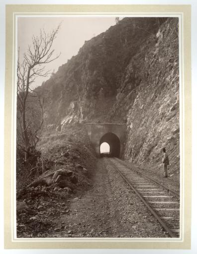 The line through Muri was originally part of the Wellington – Manawatu Line, built by the Wellington and Manawatu Railway Company, and completed in 1886. During the last stage of finishing the tunnels [see photo right] on the coastal escarpment towards Paekakariki, the last stop coming from Wellington was called Pukerua, near where Muri Station is today. There were no roads into the Pukerua Bay area at that time, and passengers had to leave the train at Pukerua Station, climb down to the beach and continue by rail on temporary tracks to Paekakariki.