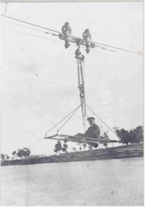When driving north along State Highway 56 through the low-lying plains flanking the Manawatu River, a traveller cannot help but notice a suspension bridge to the north of the current road, a tall industrial chimney incongruously positioned at the western end of its span [click here to view map]. Now, its suspension wires dangle without purpose, as if suspended in time as well as space, but this graceful structure still strikes a dignified – if somewhat ghostly profile – on the landscape, hinting at an important role it played in the local economy in the not too distant past.