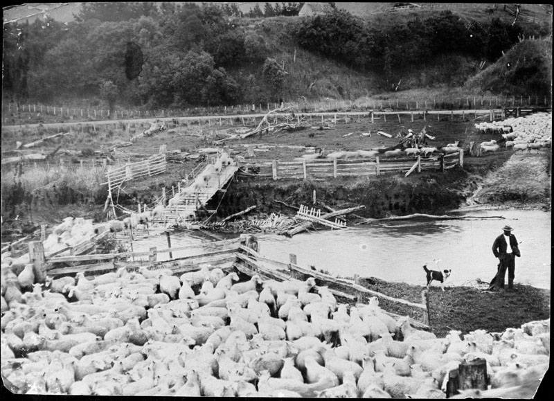 5) This is my current favourite – everyone is intrigued by moa! – but needs explaining. Explanation: it refers to the discovery of a set of large moa footprints in the Manawatū riverbank, following a flood in 1912. By chance, these footprints had been perfectly preserved in a layer of hardened blue clay, revealed when the layers of sand and soil above were scoured away by the powerful floodwaters. The discovery made national headlines, and excited scientists and the general public alike. This event is significant not only because it vividly demonstrates the powerful force of the river in shaping the Manawatū and its history, but also because it shows how layers of environmental history are found behind every landscape. (See: Prehistoric revelations of a Manawatu flood)