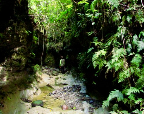 The second mystery that this bit of time travel solved was how a relatively small stream that can go dry in the summer months could have carved out such a cavernous gully of 20 metres depth. Well the answer, in very simple terms is this. As our islands started to warm after this last ‘cold snap’, the Pohangina River, which our stream is a tributary to, started to cut down into the soft mudstone land. As it did so, the stream also needed to cut down to keep up (or more accurately, down) with the river, probably through the gradual shifting of a waterfall into the river upstream, or, in fluvial geomorphologist language: ‘the mechanism was probably the headward retreat of a waterfall, initiated by incision of the main river’. … What I said.