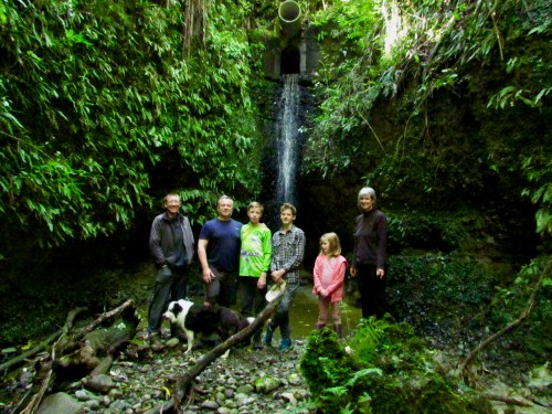 The exciting thing is, we still have that waterfall, though it now comes out of a concrete culvert rather than a natural channel. It is likely that it cut back to this place, an area of particularly hard and stable rock, and because of its relative stability, engineers chose this place to build the road over the stream a century or so ago, piping it through a culvert. Thus, the waterfall has been ‘frozen’ in time, unable to cut back any more.