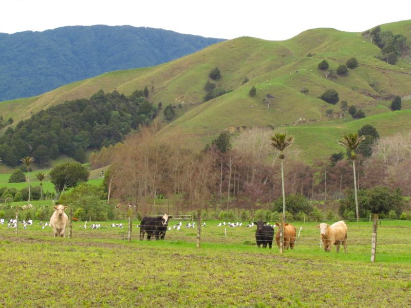 This is a view of Swamp Road, with forms an L-shape through farmland just south of Otaki township [click here to view location]. This shot is taken looking east towards the Tararua Ranges. As hinted by the name, this area, which is the floodplain of the Otaki River, was once a mosaic of wetlands, open water, raupo swamp, flax and swamp forest. However, this has been drained and cleared to make way for farmland. The river, just north of here, is now largely confined to a single channel and the ecosystem is dominated by introduced species. On Swamp Road, the name is the only remaining vestige of its original state – the road runs through a patchwork of market gardens and dairy farms. At the very end of the road, on old sand dune terrain, is the Katihiku Marae.
